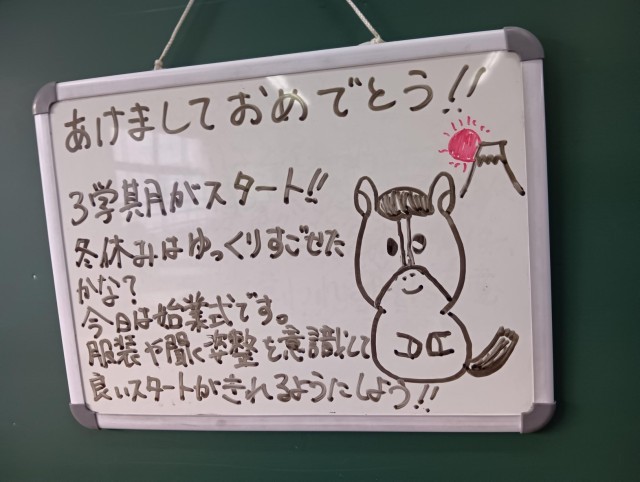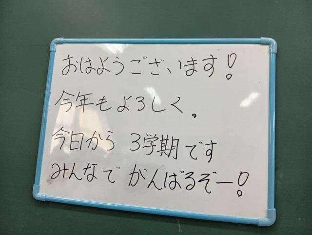 素晴らしい3学期のスタートを各クラス、各学年ともきることができました。改めて3学期を4月から新しく始まる進学、進級後の学校生活の準備期間にしていくことを始業式で全校生徒に確認しました。写真は上から、2年3組、3年2組、3年3組です。
