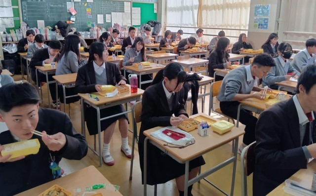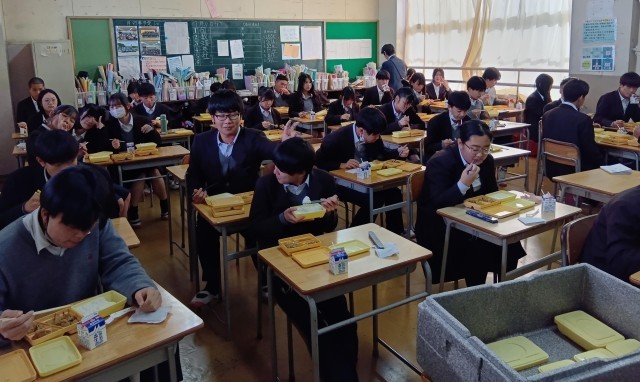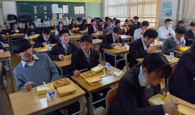 実力テストを4時間がんばったあとの給食をおいしそうに食べていました。谷川中学校でみんなと食べる給食の時間を大切にしましょう。