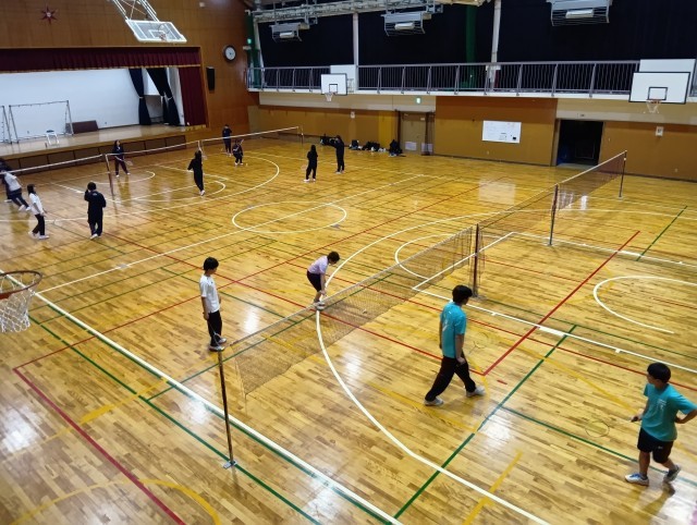 夕方からバドミントン部が練習をしていました。体力作りや基本練習を部長、副部長が中心となり、しっかり練習することができていました。楽しそうにバドミントンをしている子どもたちの姿に感心しました。