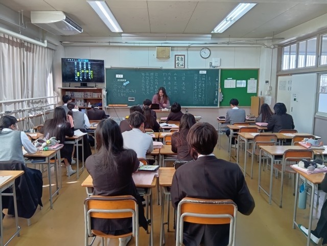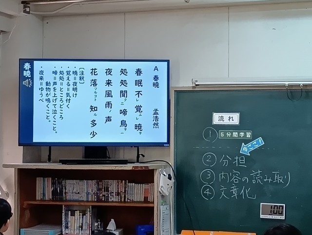 学習内容は「漢詩」でした。初めて習うこともあり、生徒は興味津々のようでした。静かな教室にとても感心しました。