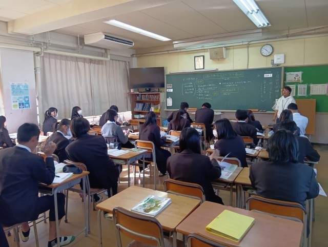 担任の先生による道徳の授業が行われていました。教材名は「あふれる愛〜マザー・テレサ〜」、内容項目は「生命の尊さ」でした。授業のねらいは「死にゆく人を看取るマザー・テレサの思いについて考えることを通して、生命には生物的・身体的生命のほか、社会的生命や精神的生命など多様性があることに気づき、生命尊重の理解のもとに自己の生き方を考え続けていこうとする道徳的実践意欲を培う」でした。写真は上から、1組、2組です。