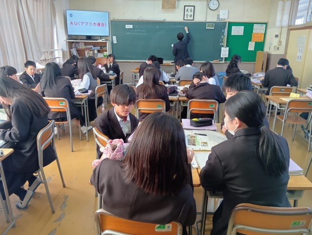 授業のめあては「アフリカの発展に向けた課題と取り組みをみつめる」でした。班活動(4人班)を通して、学び合い(協同学習)がよくできていました。