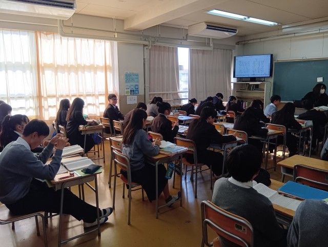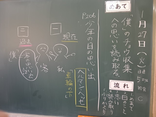 学習教材は「少年の日の思い出」、授業のめあては「僕のチョウ収集への思いを知る」でした。教科担当の先生の質問にテンポよく答える48期生を頼もしく思いました。