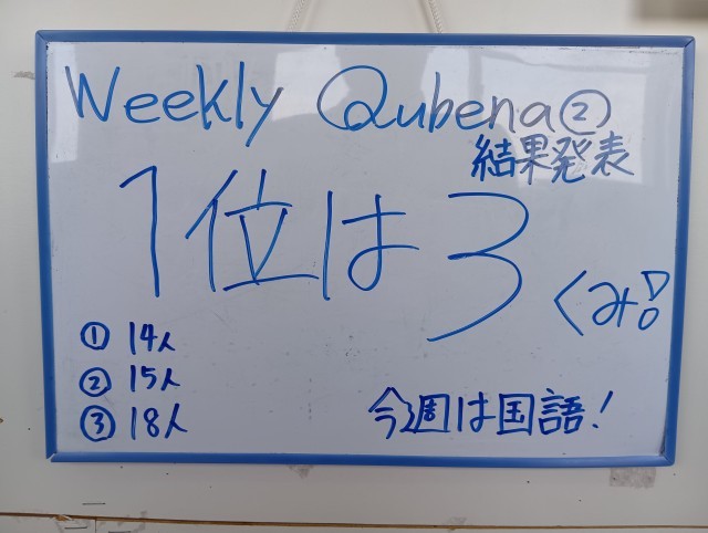 1年生が学力向上と家庭学習の習慣化を目的として、Weekly Qubenaに取り組んでいます。タブレットパソコン内にある学習用教材(Qubena)を五教科を1週間ごとに区切り、10週間にわたって取り組みます。正答率の高かったクラスが優勝です。先週は3組が優勝でした。今週は国語に取り組んでいます。
