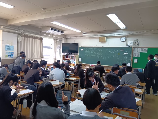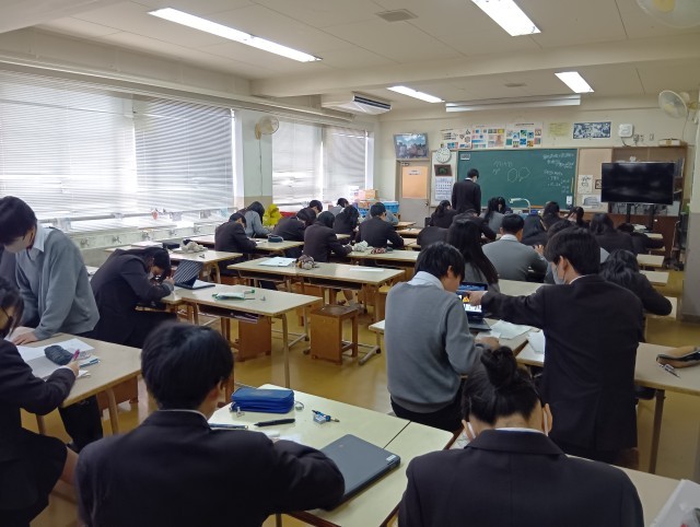 写真は上から、1組(数学)、2組(美術)、3組(理科)です。卒業までの登校日数は、あと31日になりました。46期生の仲間と学習する日々を大切にしましょう。