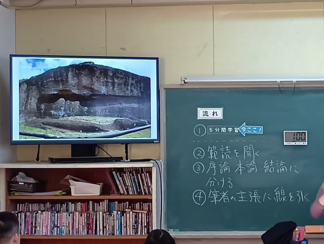 授業のめあては「筆者の主張を読み取ろう」でした。今日もとても丁寧に作られたパワーポイントが印象的でした。担任の先生は、今日もクラスの子どもたちにメッセージを書いていました。