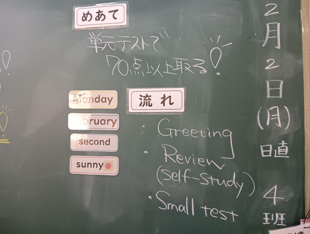 写真はこのあと行われる単元テストの勉強をしているところです。単元テストはできたでしょうか。