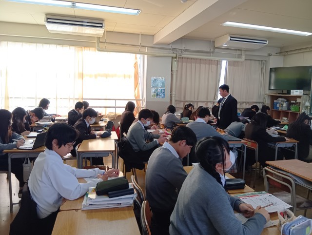 写真は上から、1組(理科)、2組(社会)、3組(英語)です。入試に向けて、リスニングテストをしたり、よく出題される問題の解説をしたり、問題集を解いたりしていました。私立高校等の入試がいよいよ目前に迫ってきました。