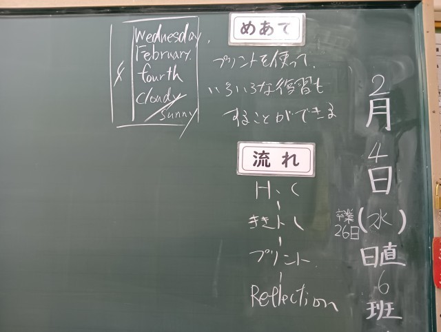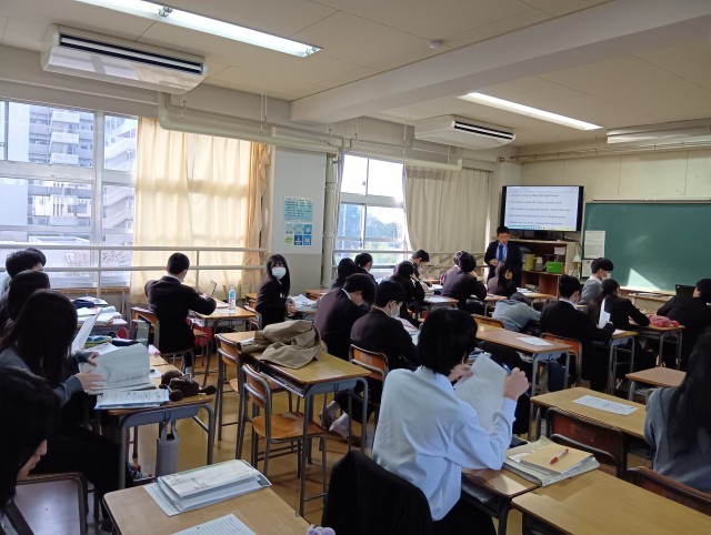 入試対策プリントが配られていました。私立高校等の入試を来週に控え、とても静かな教室でした。
