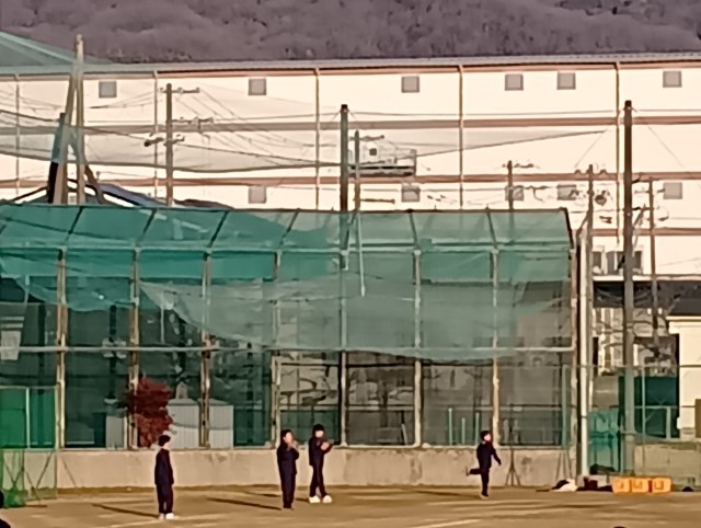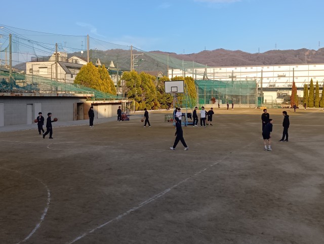 グラウンドに顧問の先生もつき、練習が行われていました。写真は上から、男子バスケットボール部、サッカー部、野球部です。