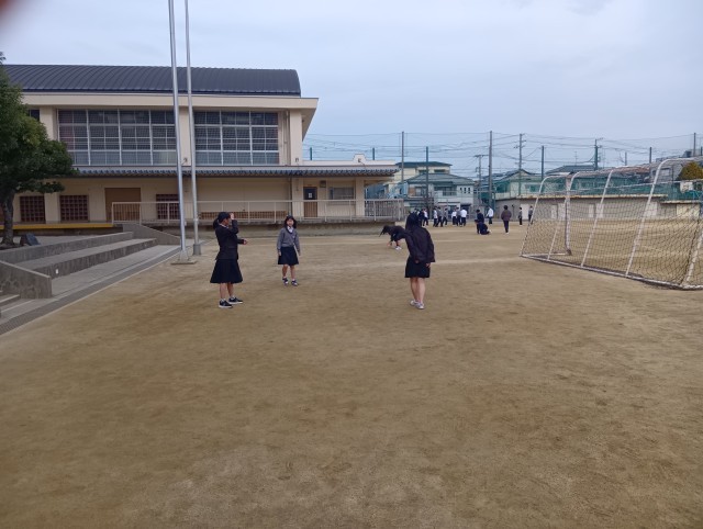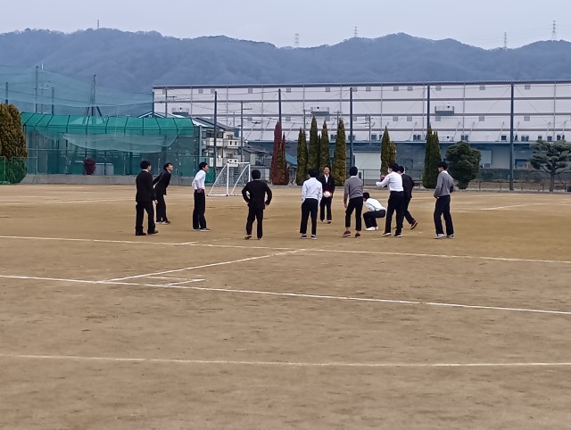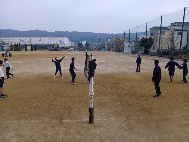 少し暖かくなった気温の中で、仲間と元気に遊ぶ谷中生がグラウンドにいました。