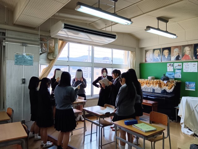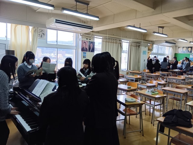 卒業式で歌う卒業の歌(YELL)の練習をパート別に行っていました。練習を重ねるごとに歌声はよくなっています。がんばれ!46期生!