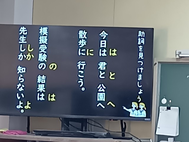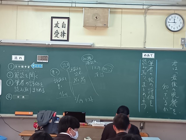 教科担当の先生のパワーポイントを使いながら行っていた説明をクラス全員の生徒が姿勢を正して、真剣に聞いていました。子どもたちの授業に臨む姿勢も変わってきています。進路学習を通して、模擬受験に取り組んだことがいい結果につながっています。