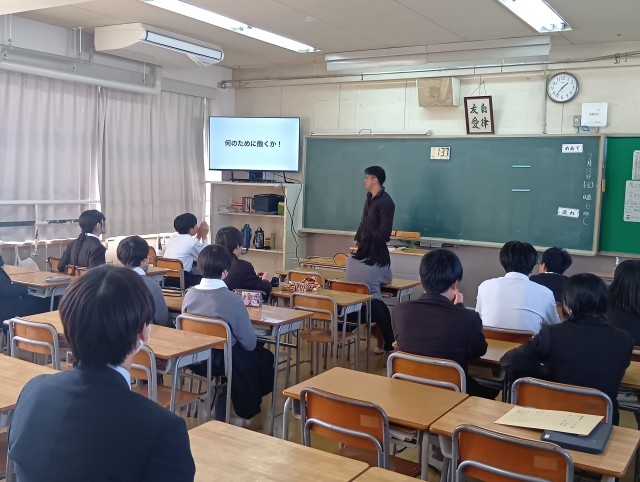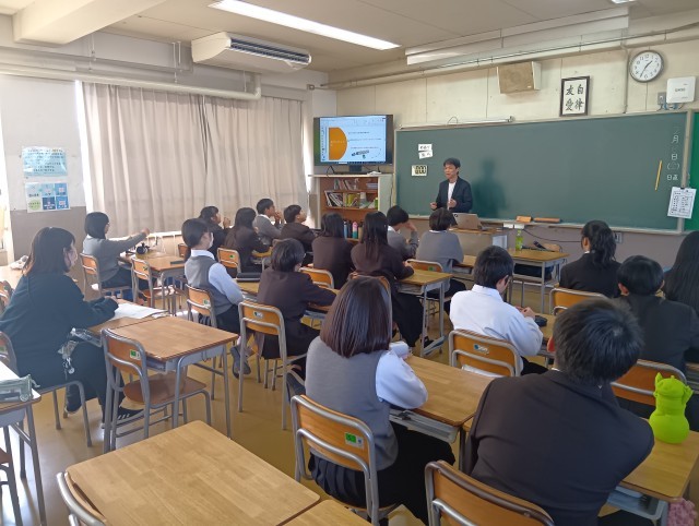 今日はキャリア教育(進路学習)の出前授業として、6つの事業所から講師の方(代表取締役・代表・オーナー)を本校にお招きしました。今日の出前授業の前に子どもたちは仕事新聞(廊下に掲示されています)を一人ひとりが作成しました。今日のご講義いただいた内容は、自分の将来の仕事選びにつながったはずです。48期生の話を聞く態度は、今日も抜群でした。