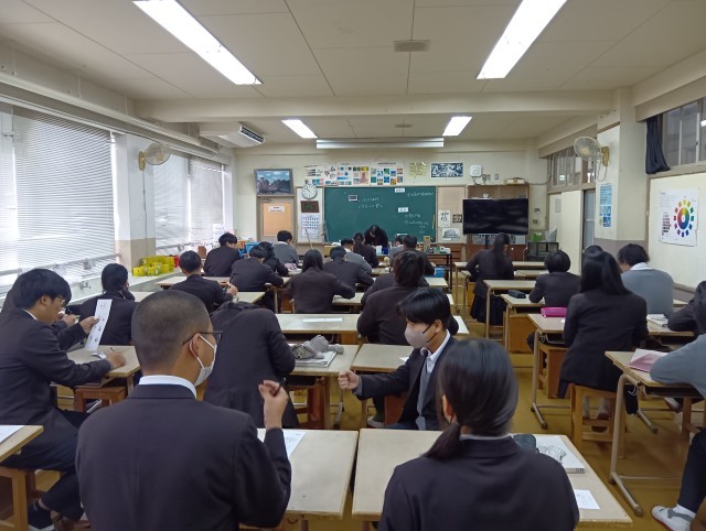 写真は上から、1組(数学)、2組(美術)、3組(英語)です。各クラスの学習内容は以下の通りです。