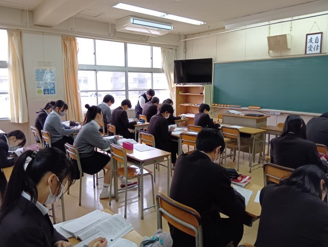 公立高校の入試対策プリントを子どもたちは、一生懸命に解いていました。受験がまだ終わっていない仲間を応援する雰囲気がとてもよかったです。