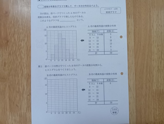 学習内容は「データの活用」でした。ヒストグラムが書けることを目標にしていました。