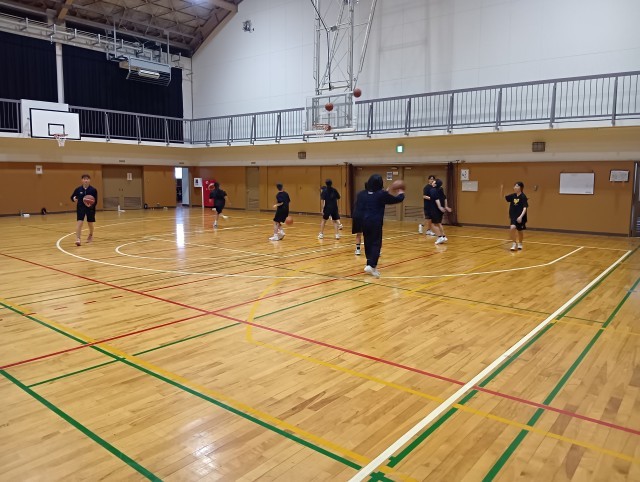 夕方からは女子バスケットボール部が練習をしていました。引退した3年生も後輩たちのために練習にかけつけてくれました。