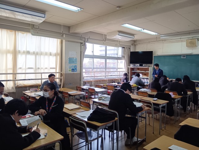 公立高校の入試対策プリントをみんなで解いていました。とても静かな教室でした。