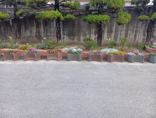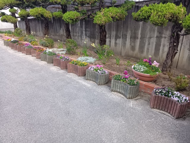 来週の卒業式に向けて、校務員さんが花壇に素敵なお花を植えてくれました。46期生の卒業式に向けて、着々と準備が進んでいます。