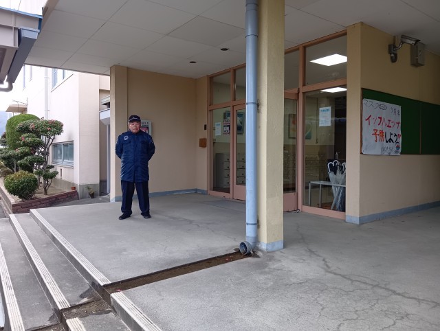 今日も警備員さんが不審者対応として、生徒の登校時間に職員玄関に立ってくださっていました。