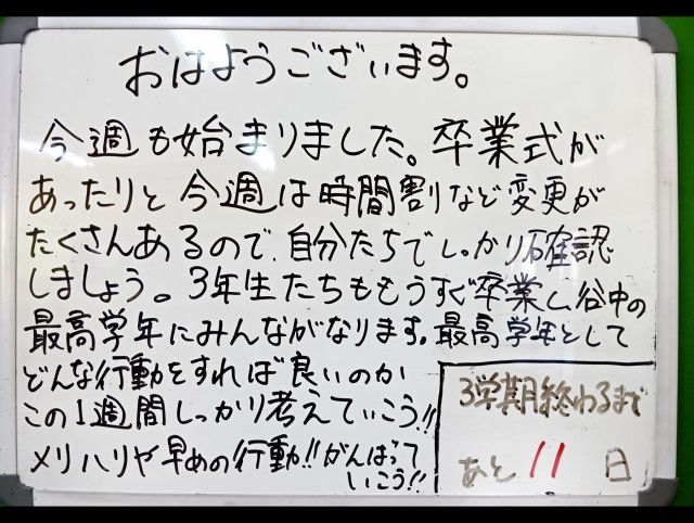 学習内容は「助動詞」でした。修了式まであと11日になりました。最後まで気を抜くことなく47期生はがんばっていました。