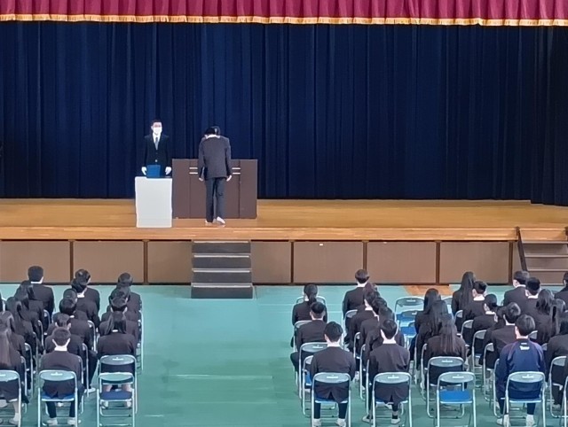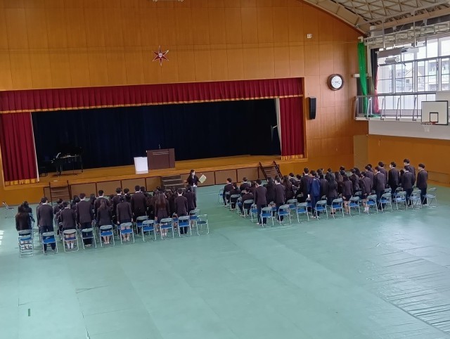 今日の午後、体育館で金曜日に行われる卒業式の予行を行いました。いつも学校行事を熱く、本気で取り組んできた46期生らしい緊張感のある卒業式予行になりました。