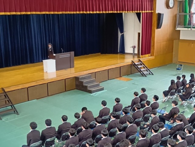 国歌、校歌、卒業の歌などの歌声は、練習してきた中で一番の歌声でした。本番に強い46期生らしい歌声でもありました。まだまだ所作や歌声もレベルアップできます。今日の卒業式予行の反省をもとに、明日も卒業式練習が行われます。たくさんの人を感動させられる卒業式になることを心から願っています。がんばれ!46期生!