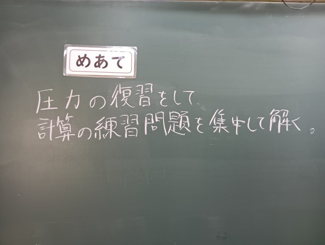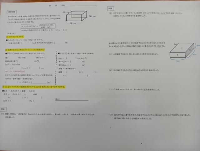 学習内容は「圧力」でした。練習プリントをみんなで解きました。