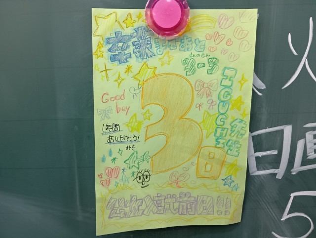黒板に卒業までのカウントダウン表が貼ってありました。46期生の卒業まであと3日です。