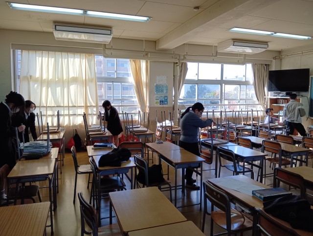 今日は公立高校の一般入試の日です。受験のない3年生は、1年間使用した教室や廊下の掃除をしました。掲示物もすべてはがしました。一生懸命に清掃をしてくれた3年生の皆さん、ありがとうございました。