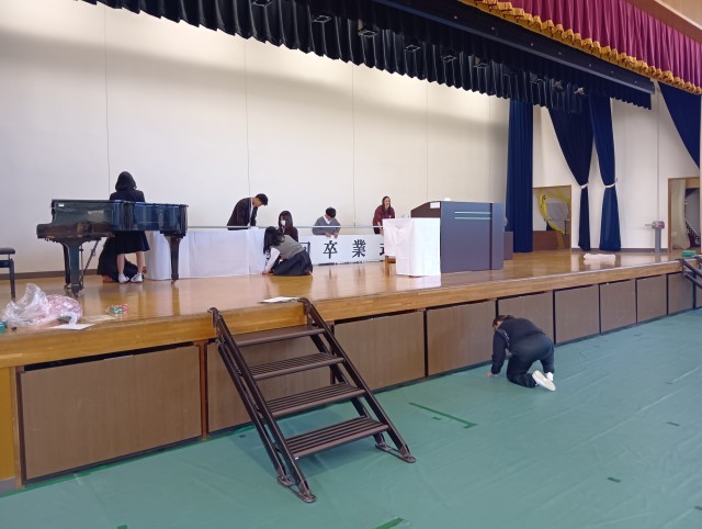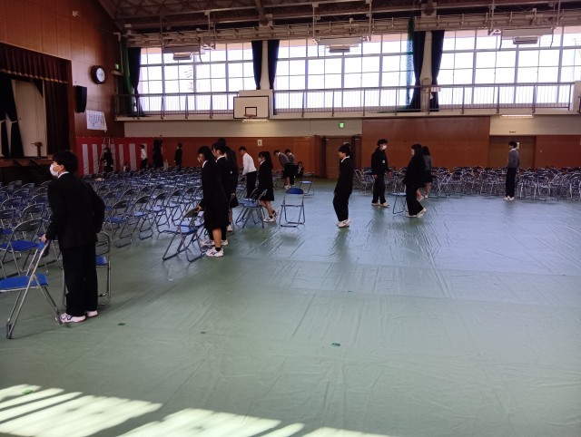 明日の第46回卒業式の準備を1年生が心を込めて行ってくれました。
