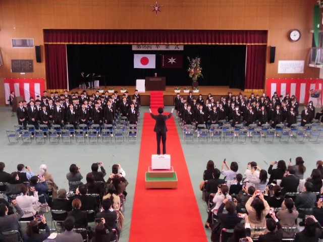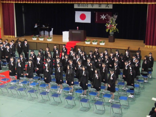 卒業の歌(Yell)もがんばりました。今まで練習してきた中で、一番の歌声でした。指揮や伴奏をがんばってくれた代表生徒も見事でした。「お疲れ様」と「ありがとう」を伝えます。