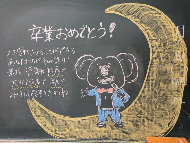 写真は当日の朝に書かれていた各教室の黒板です。上から3年1組、3年2組、3年3組です。