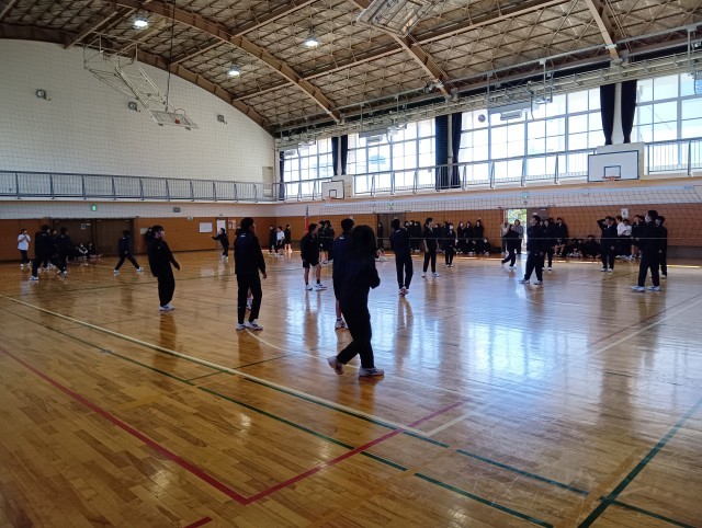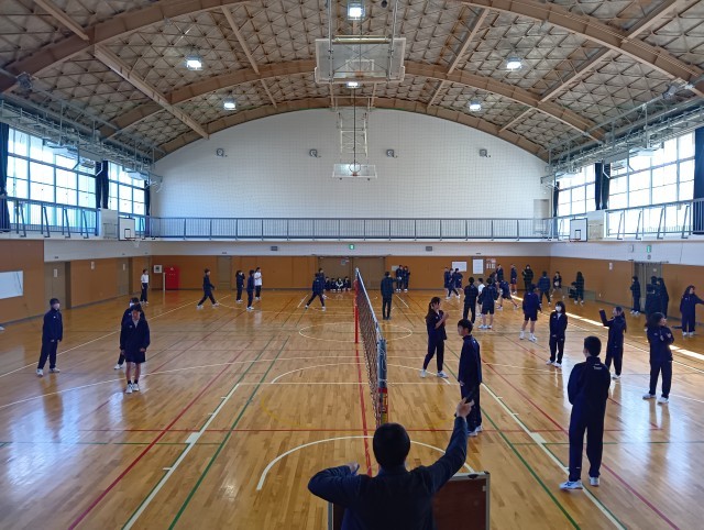 1年生が体育館で球技大会を行っていました。バレーボールとドッジボールの2種目をクラス対抗戦で行っていました。校長室まで子どもたちの歓声が聞こえるほど、大いに盛り上がっていました。