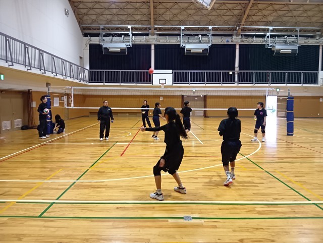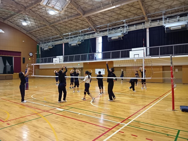 朝から女子バレー部が朝練をがんばっていました。元谷川中学校の教員も練習に加わり、3名の体制で練習が行われていました。練習は嘘をつきません。がんばろう! 女子バレー部!