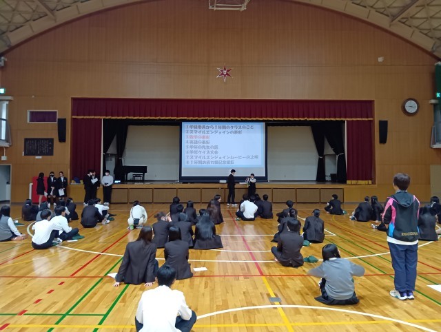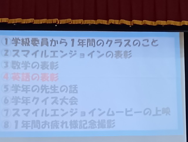 2年生が最後の学年集会を行っていました。様々な表彰や先生方からのお話、クイズ大会や思い出の映像の上映など、最後まで47期生らしい分刻みの企画でした。