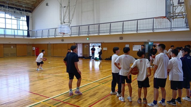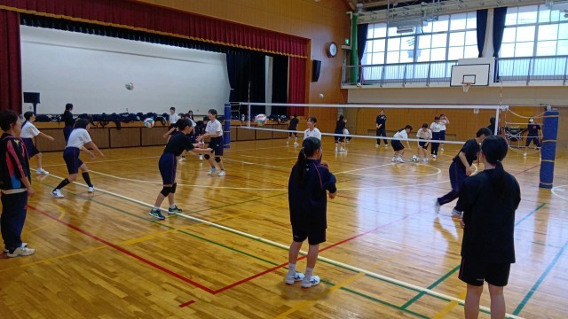 体育館では、男子バスケ部と女子バレー部が体験を行いました。