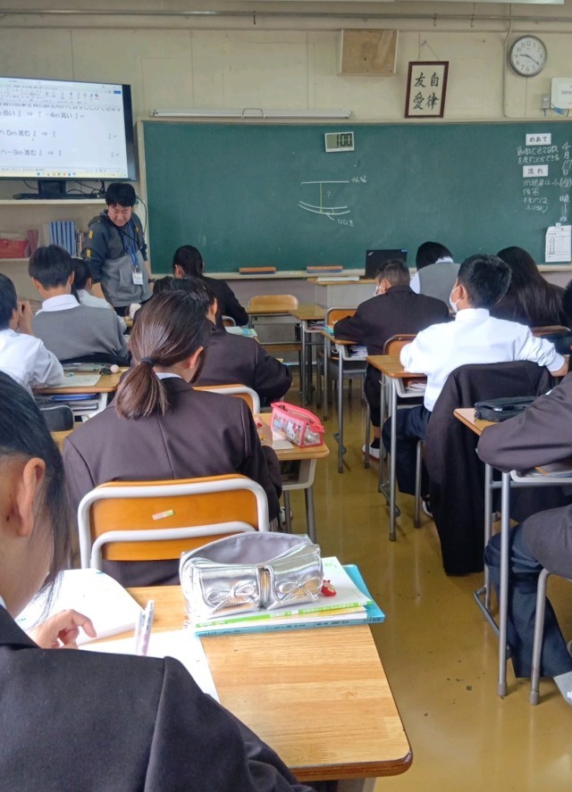 谷川中学校では、授業のめあてと1時間の流れをどの授業でも示しています。