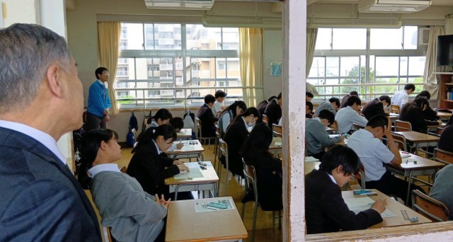 どのクラスでも、時間いっぱいまであきらめずに問題と向き合うことを確認していました。