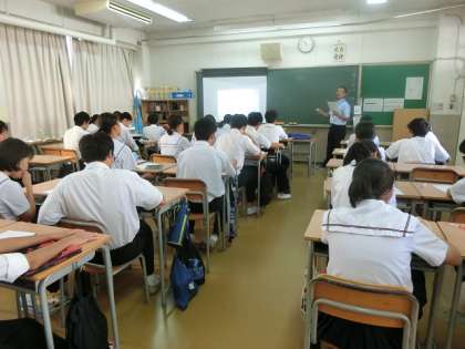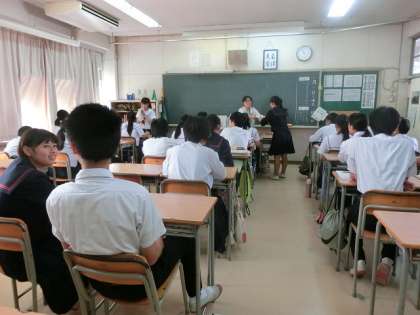 写真は、理科と国語の答案用紙返却の様子です。