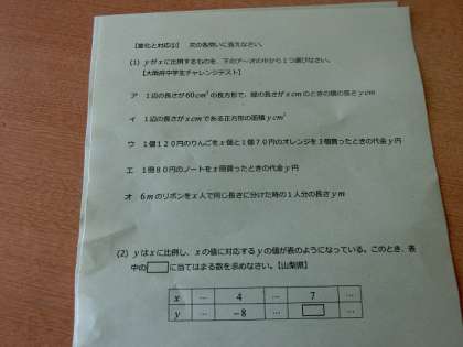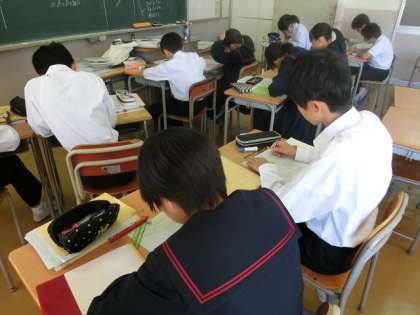 授業の終わりには、中学生チャレンジテストの問題に挑戦していました。