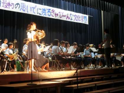 舞台の部、まずは吹奏楽部の演奏、科学部の映像、2年生のパフォーマンスが披露されました。