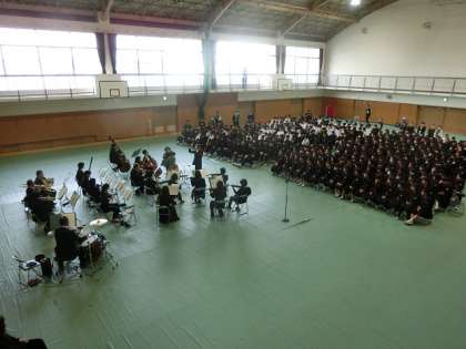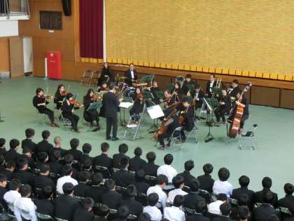 今日は、奈良フィルハーモニー管弦楽団の方に来校いただき、クラッシックを中心に鑑賞させていただきました。