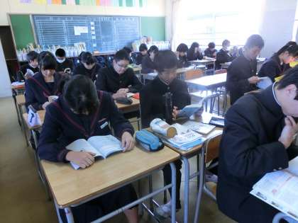 写真は、2年生の朝読の風景です。