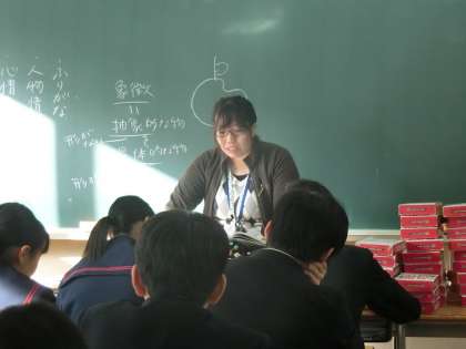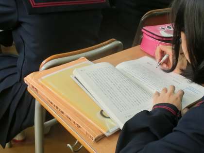 子どもたちは、教科書の「登場人物の感情を直接表す部分」や「特徴的な情景描写部分」に線を引きながら、聴き入っていました。