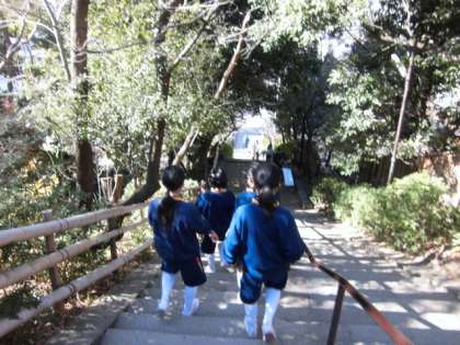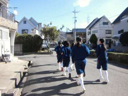 体操部は体育館での練習の後、野崎観音までランニングをしました。