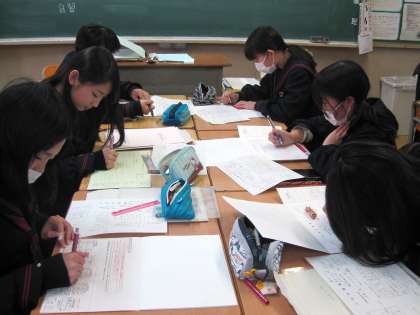 3年生は実力テスト終了後、私立高校出願に向けて願書の下書きをしました。