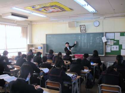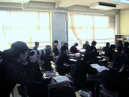 国語科・沖野先生の出身大学から「教職に就いている卒業生の写真を大学のパンフレットに掲載したいので撮影させてもらいたい」との依頼があり、本日授業風景(2年4組)を撮影に来られました。