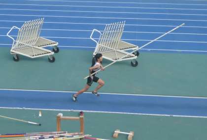 今回は、寒い中行われる大会のため、棒高跳の女子選手1名のみの出場になりました。